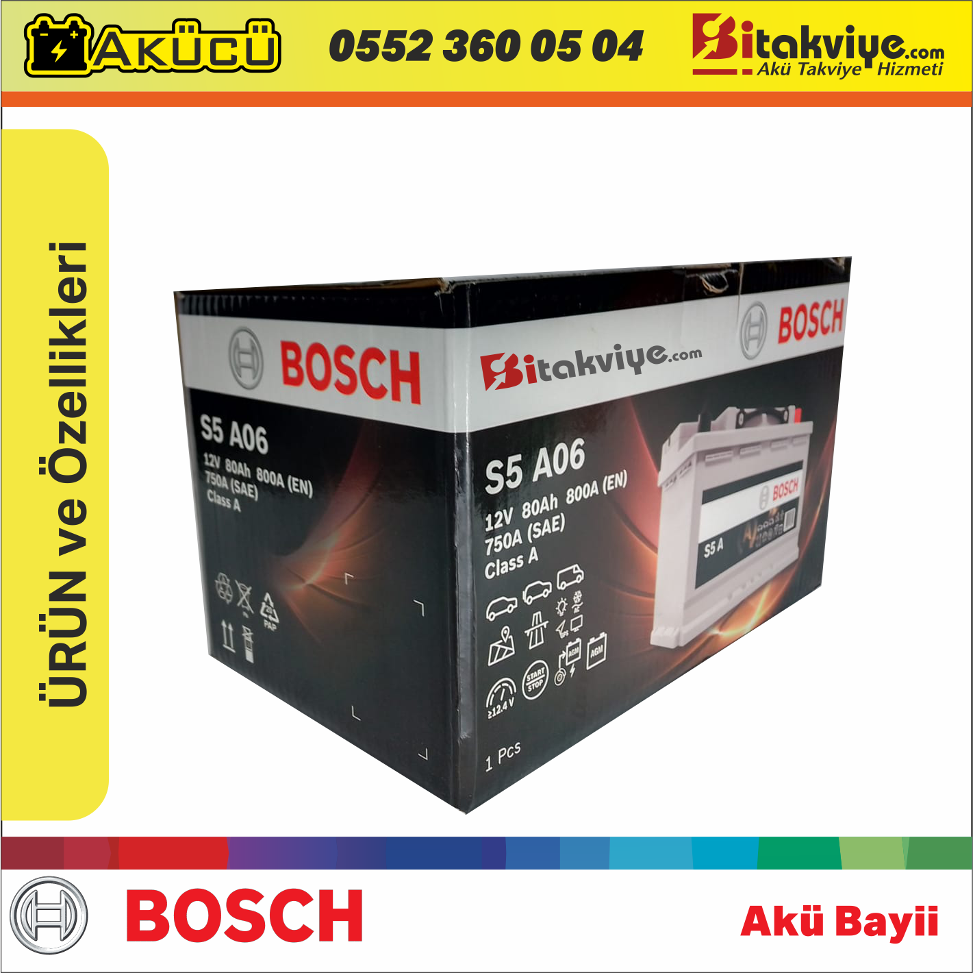 Bosch Akü Bayi Yeniakucu.com – Bosch marka Bosch S5 A06 12 V 80 Ah AGM – 800 A (EN) Akü