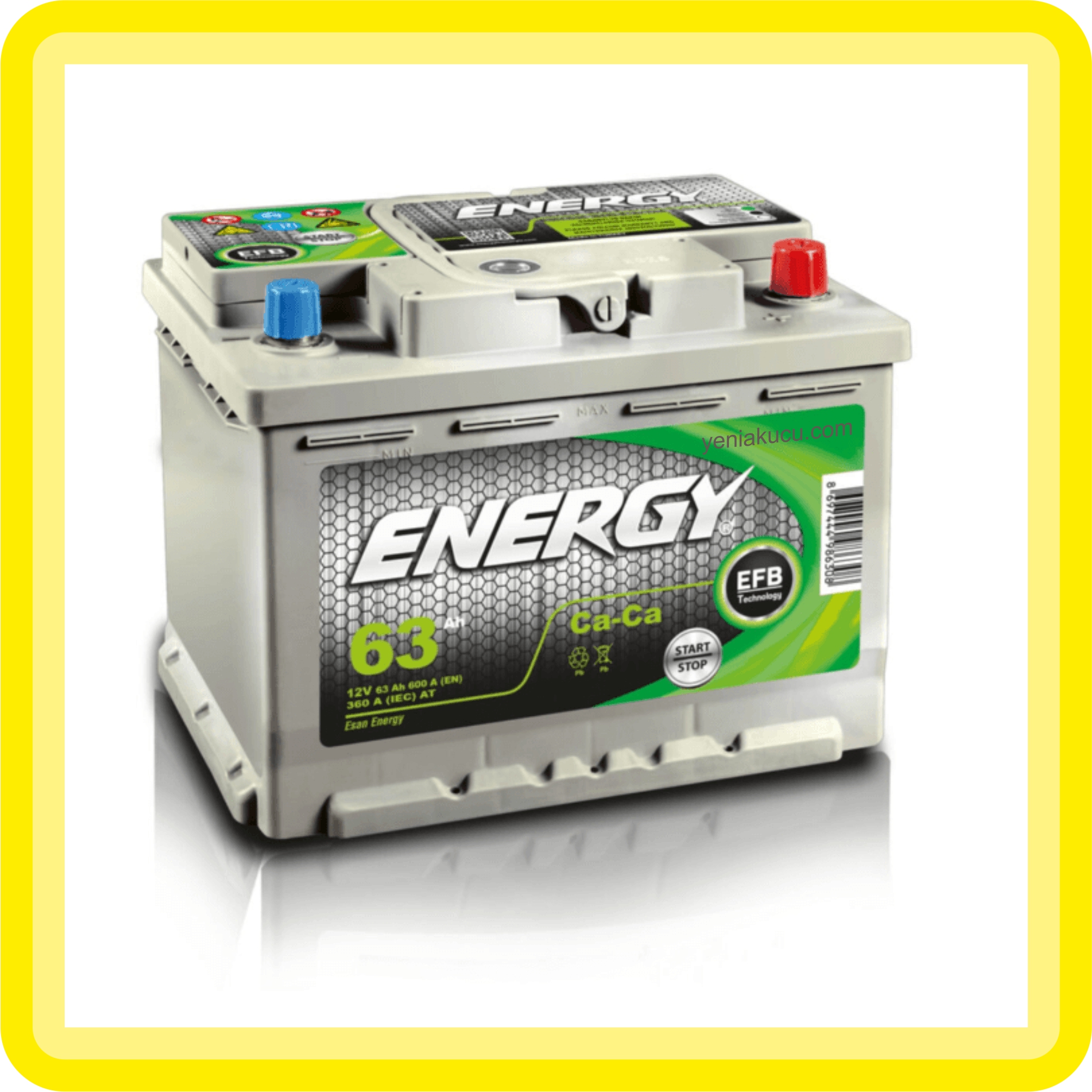 Energy Akü 12V 63Ah EFB 600A EN CCA Kapalı Bakımsız start Stop Akü – 2 Yıl Garantili